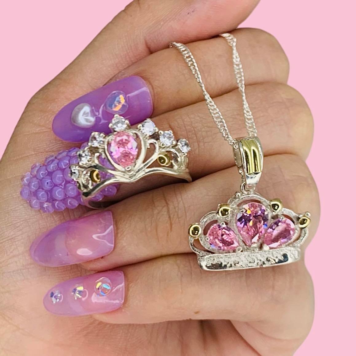 Artículo: KIT 133-6Conjunto Corona y Anillo cubic gota Rosa