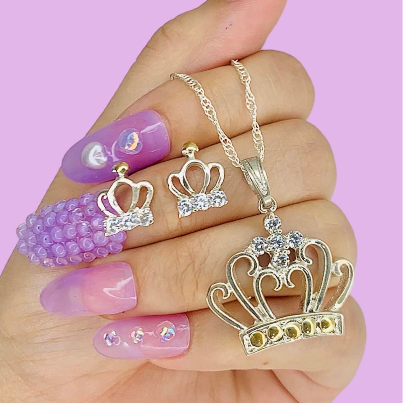 Conjunto Singapur 30 Dije cruz Grande y Anillo Corona cubic blanco Plata y Oro