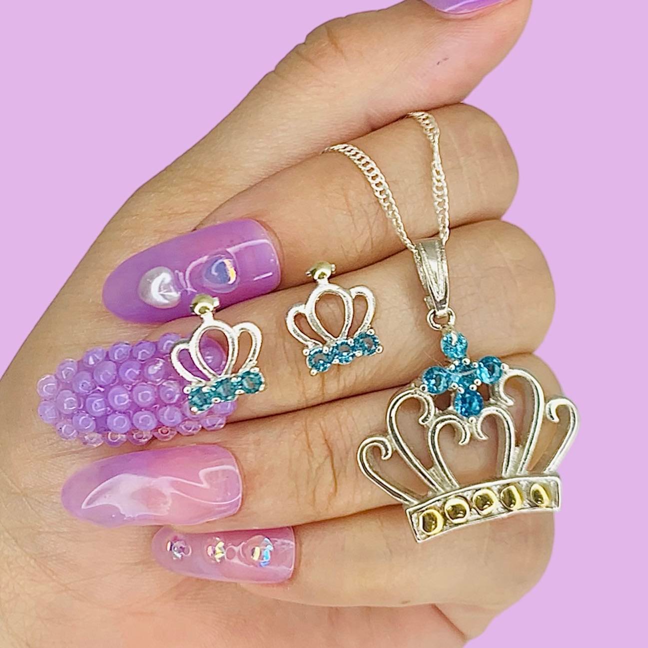Conjunto Singapur 30 Dije cruz Grande y Anillo Corona cubic Celeste Plata y Oro