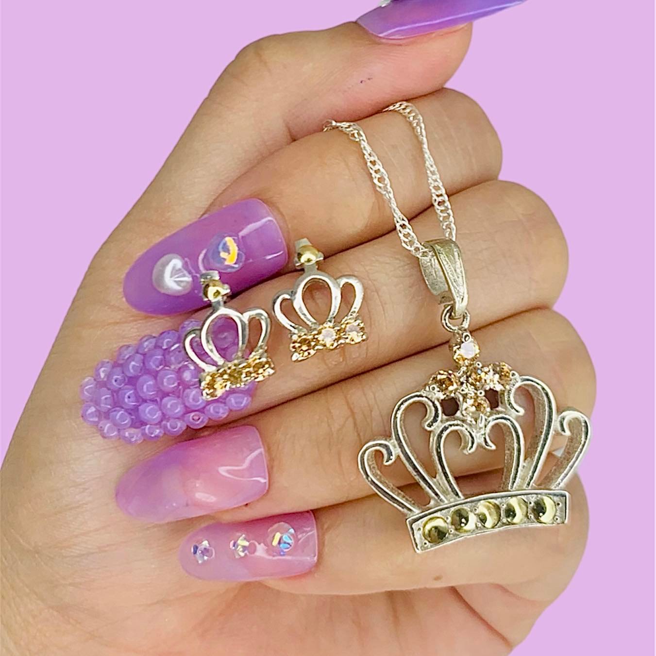 Conjunto Singapur 30 Dije cruz Grande y Anillo Corona cubic ambar Plata y Oro