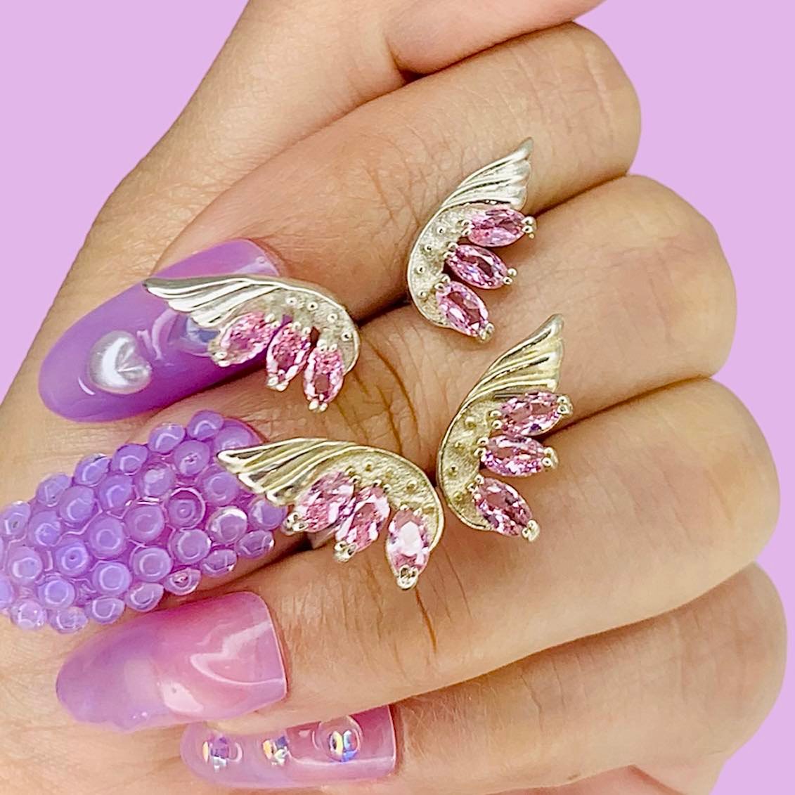 Conjunto Anillo y Aros Alas de Hada Rosa de Plata 925