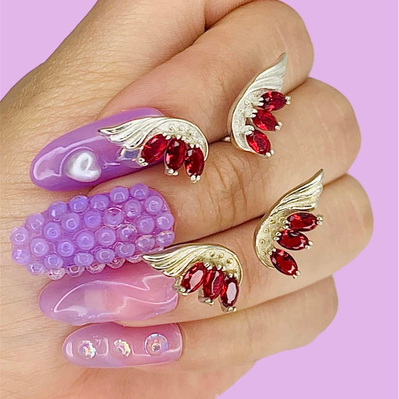 Conjunto Anillo y Aros Alas de Hada Rojo de Plata 925