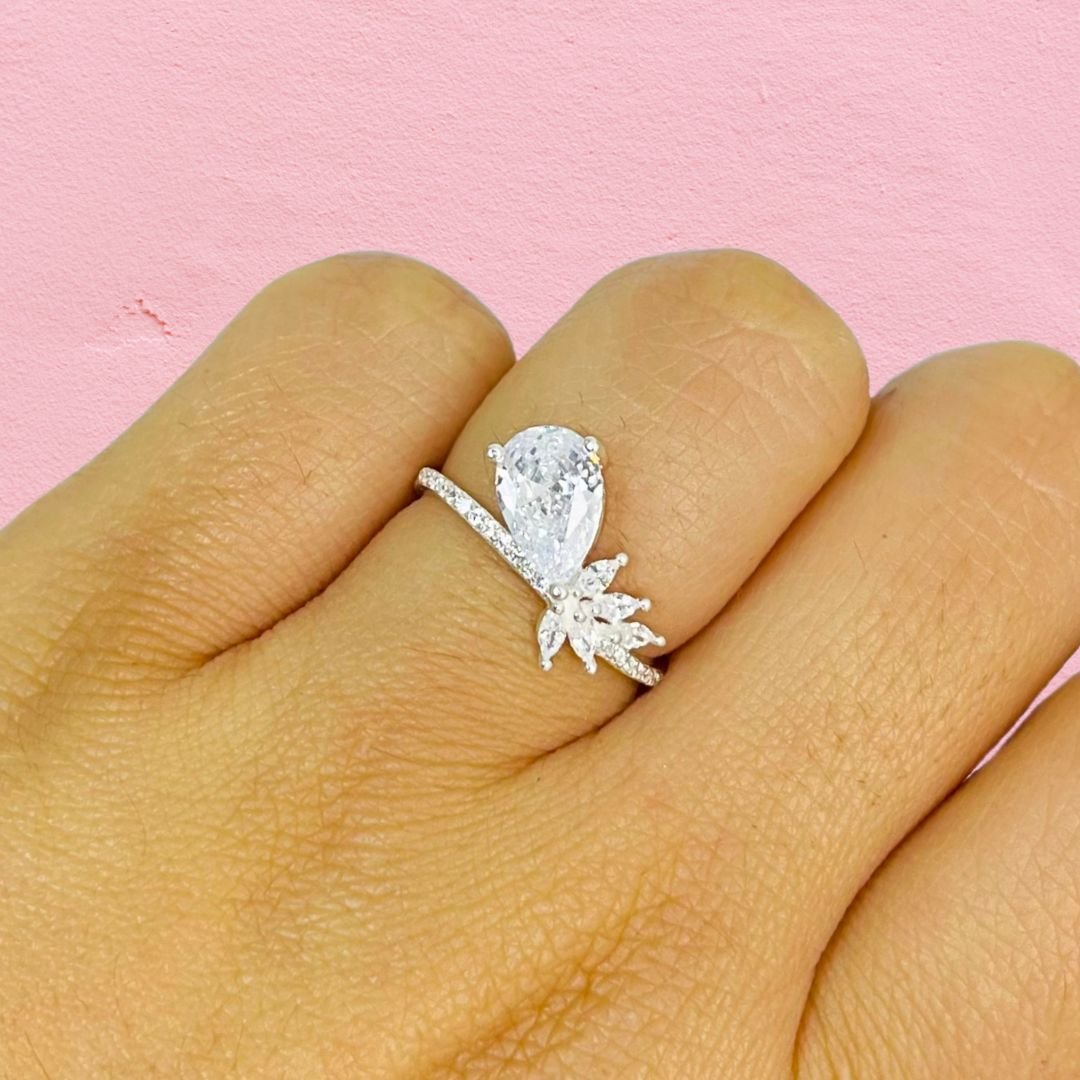 Anillo Lujoso de fiesta con cubic gota blanco de Plata 925