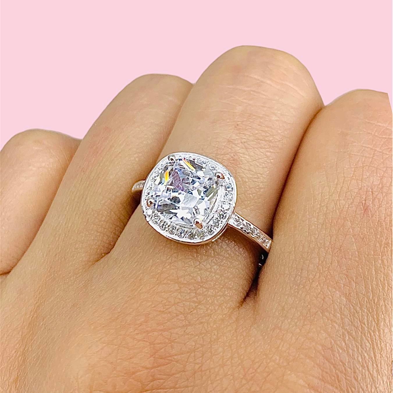 Anillo Lujoso de fiesta con cubic cuadrado blanco de Plata 925