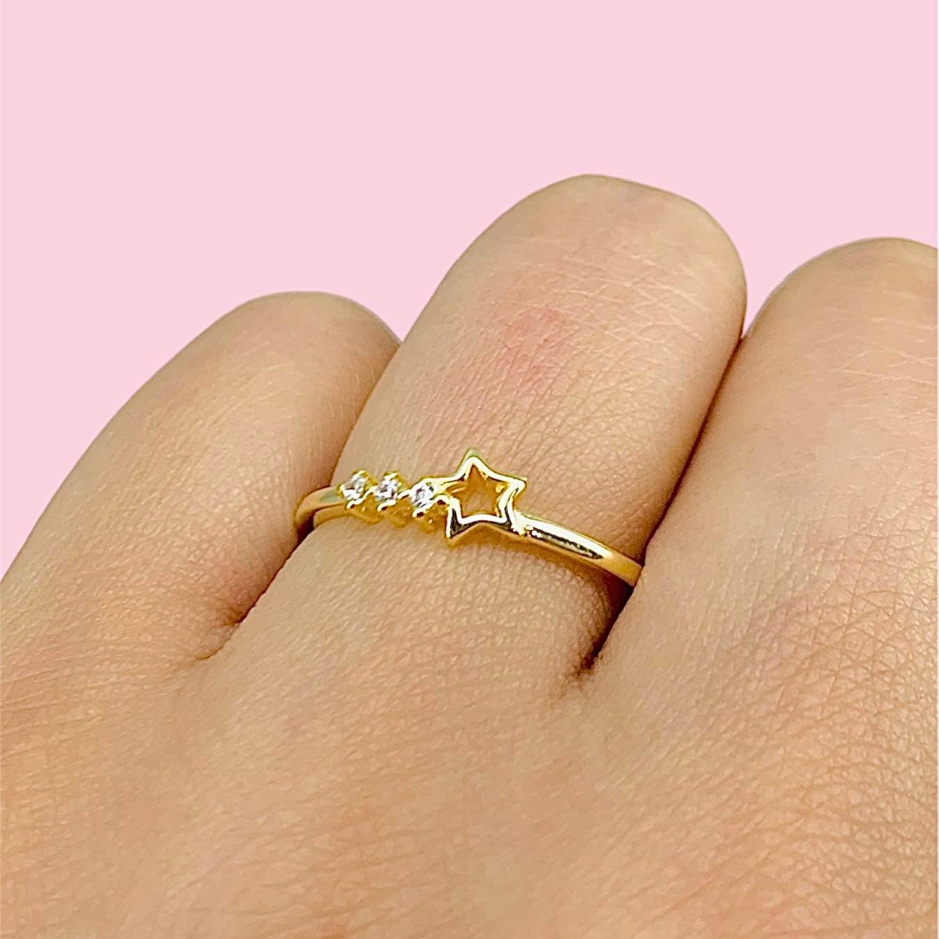 Anillo Estrella cometa de Plata y Baño de Oro Gold