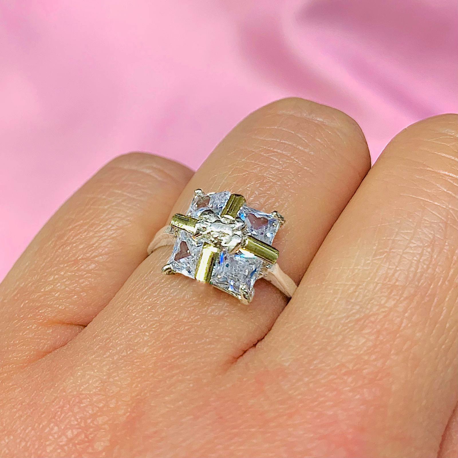 Artículo: AP 006-8Anillo con moño y cubic Agua marina 4x4 mm
