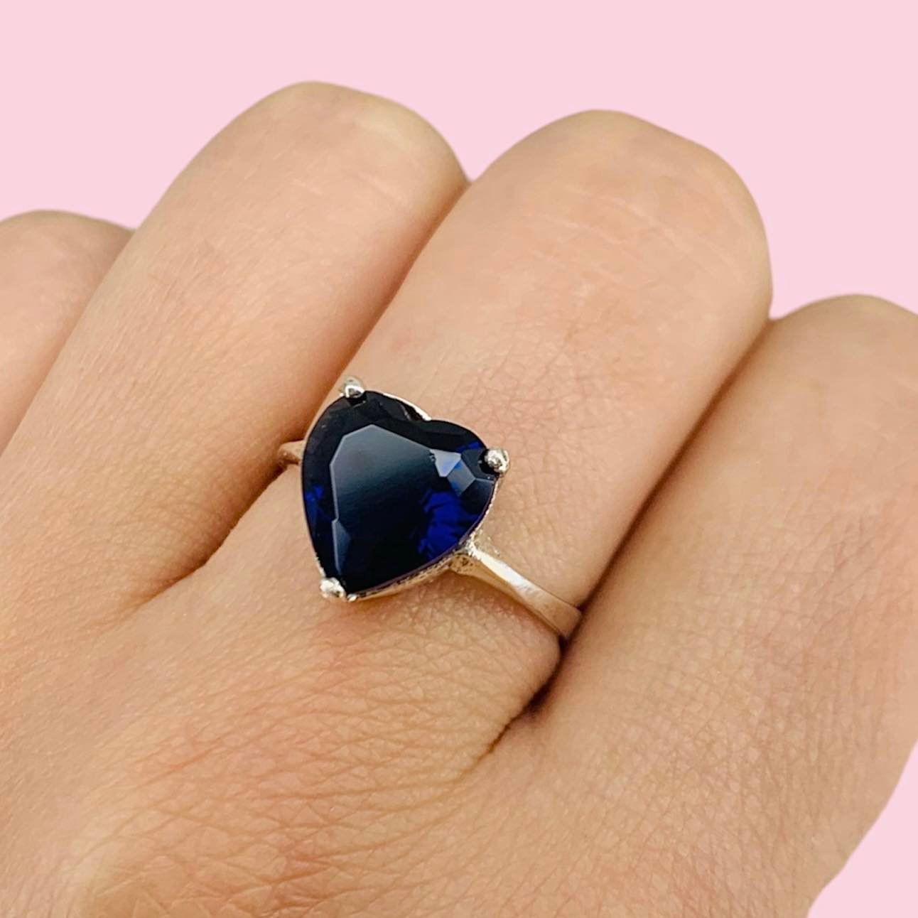 Anillo Valentin con cubic corazon azul de Plata 925