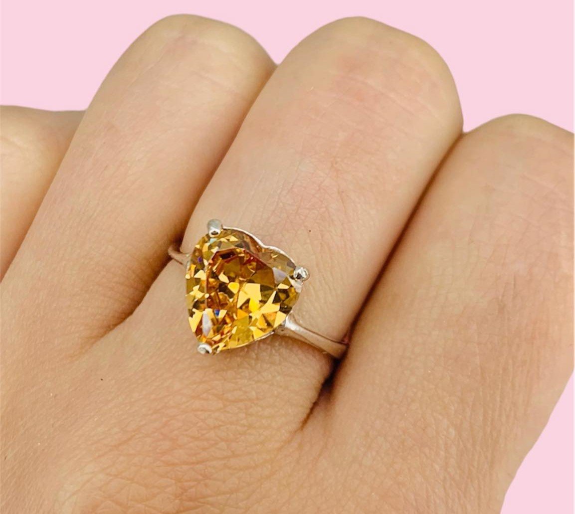 Anillo Valentin con cubic corazon Ambar de Plata 925