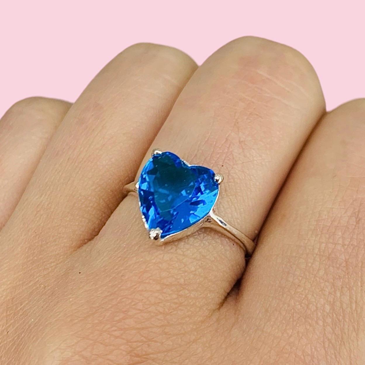 Anillo Valentin con cubic corazon Celeste de Plata 925