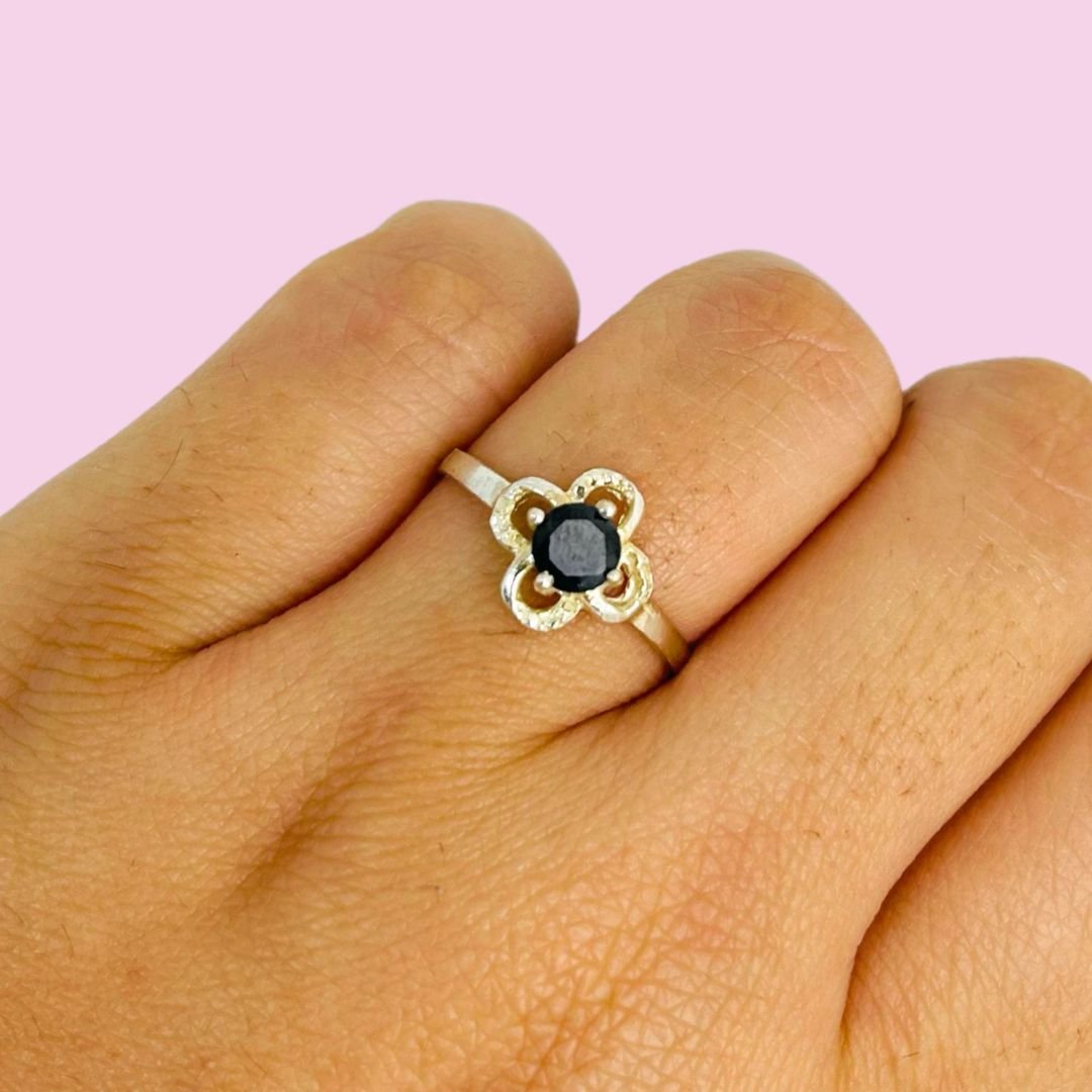 Anillo Trebol de la suerte cubic negro de Plata 925