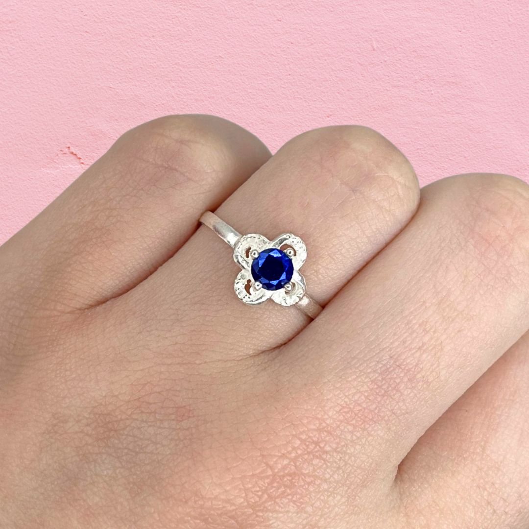 Anillo Trebol de la suerte cubic azul de Plata 925