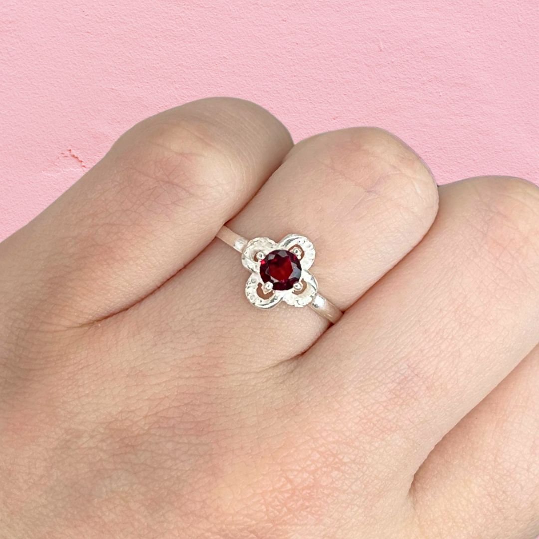 Anillo Trebol de la suerte cubic Rojo de Plata 925