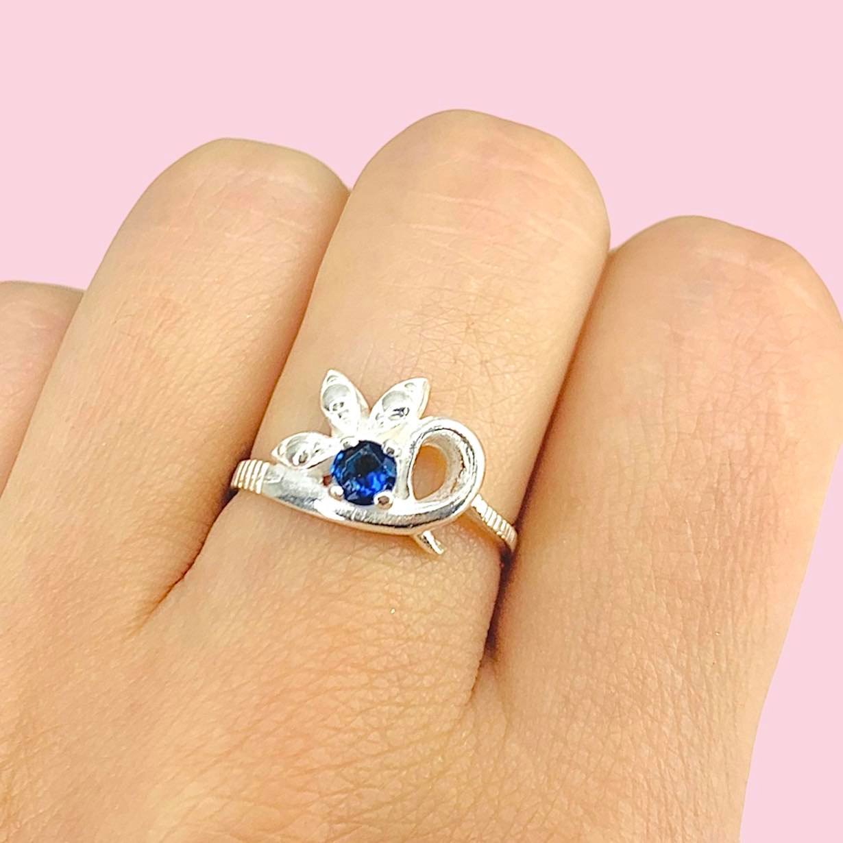 Anillo Flora con cubic azul de Plata 925