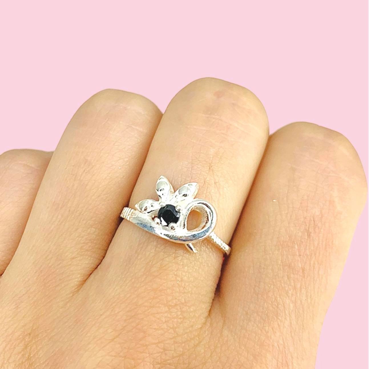 Anillo Flora con cubic negro de Plata 925