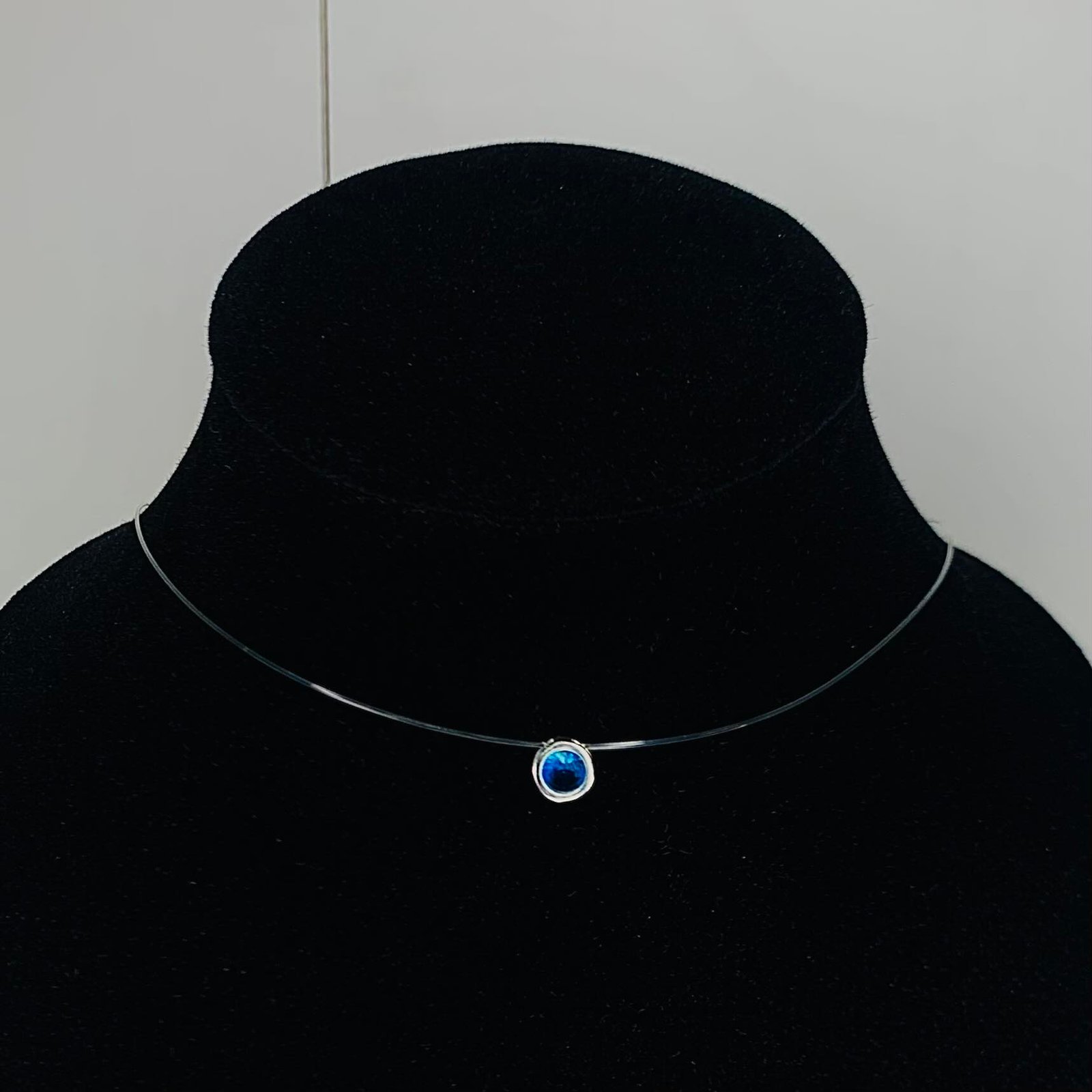 Conjunto Cadena de Tanza y dije susanita azul 5mm de Plata 925