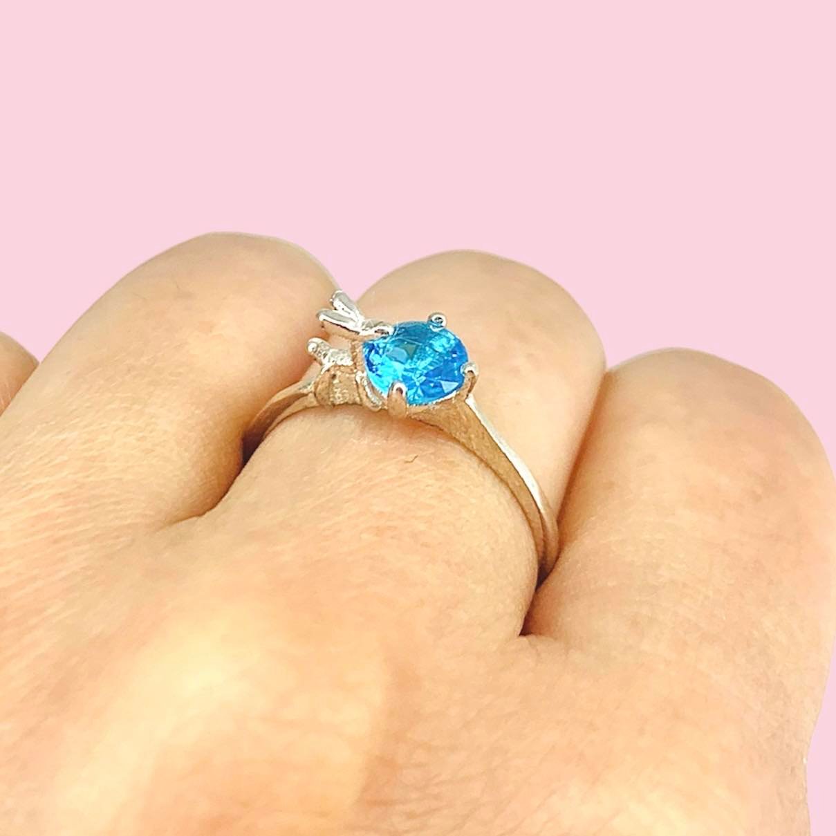Anillo Perrito Cumpleañito y Cubic Celeste de Plata 925