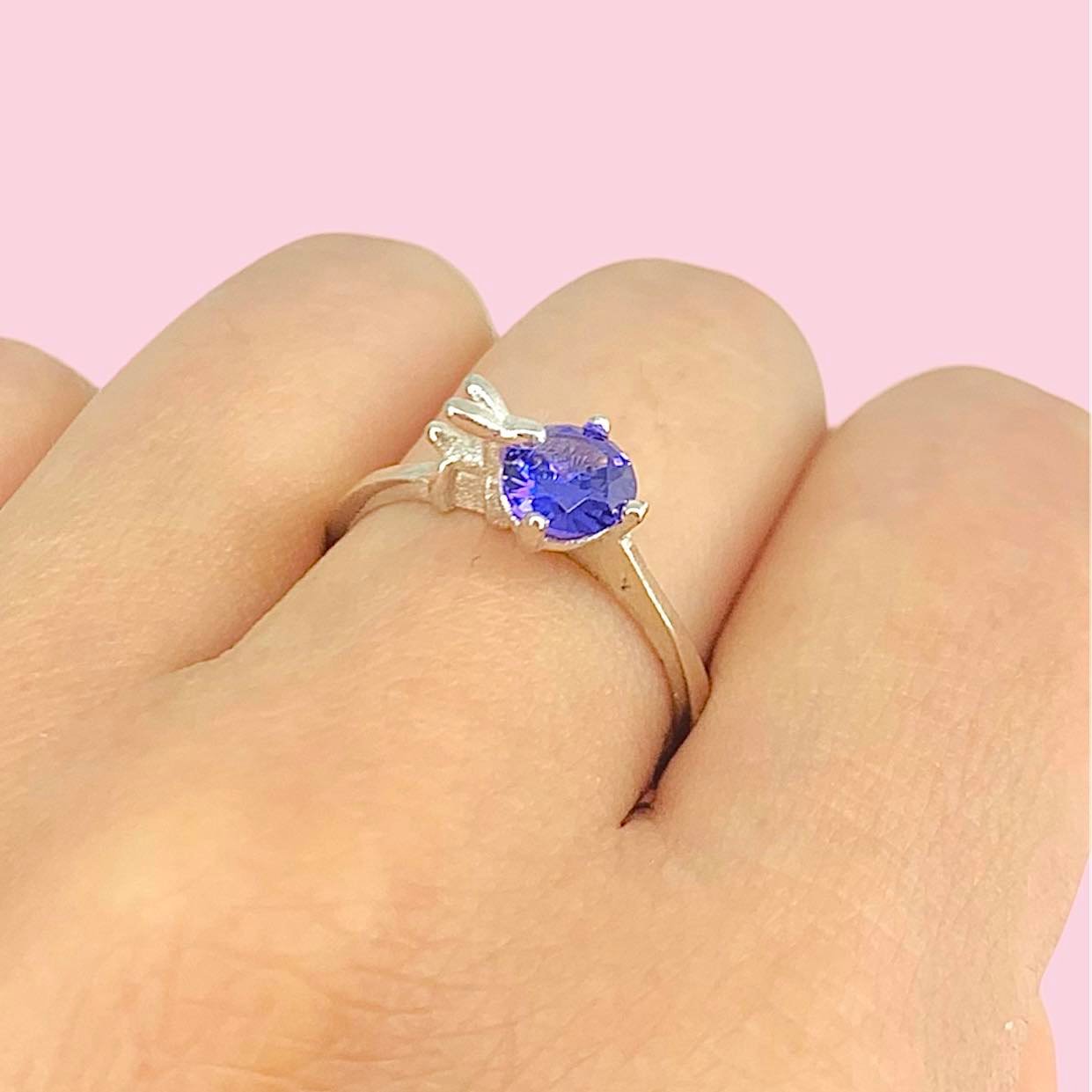Anillo Perrito Cumpleañito y Cubic Violeta de Plata 925