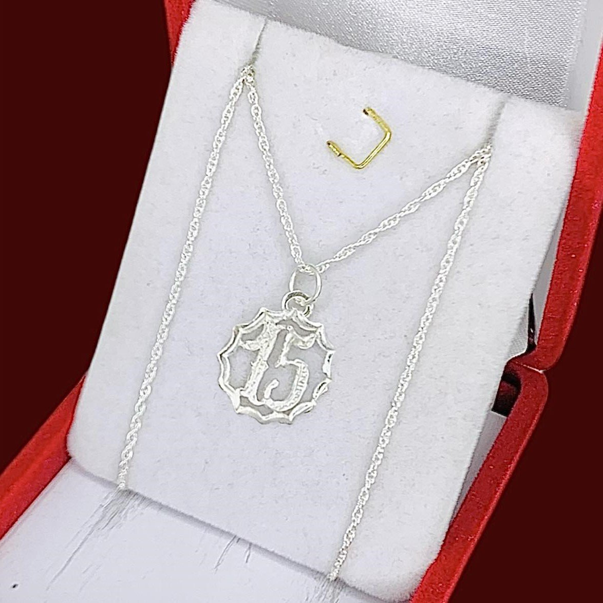 Conjunto Cadena Tourbillon 25 y dije Quinceaños de Plata 925