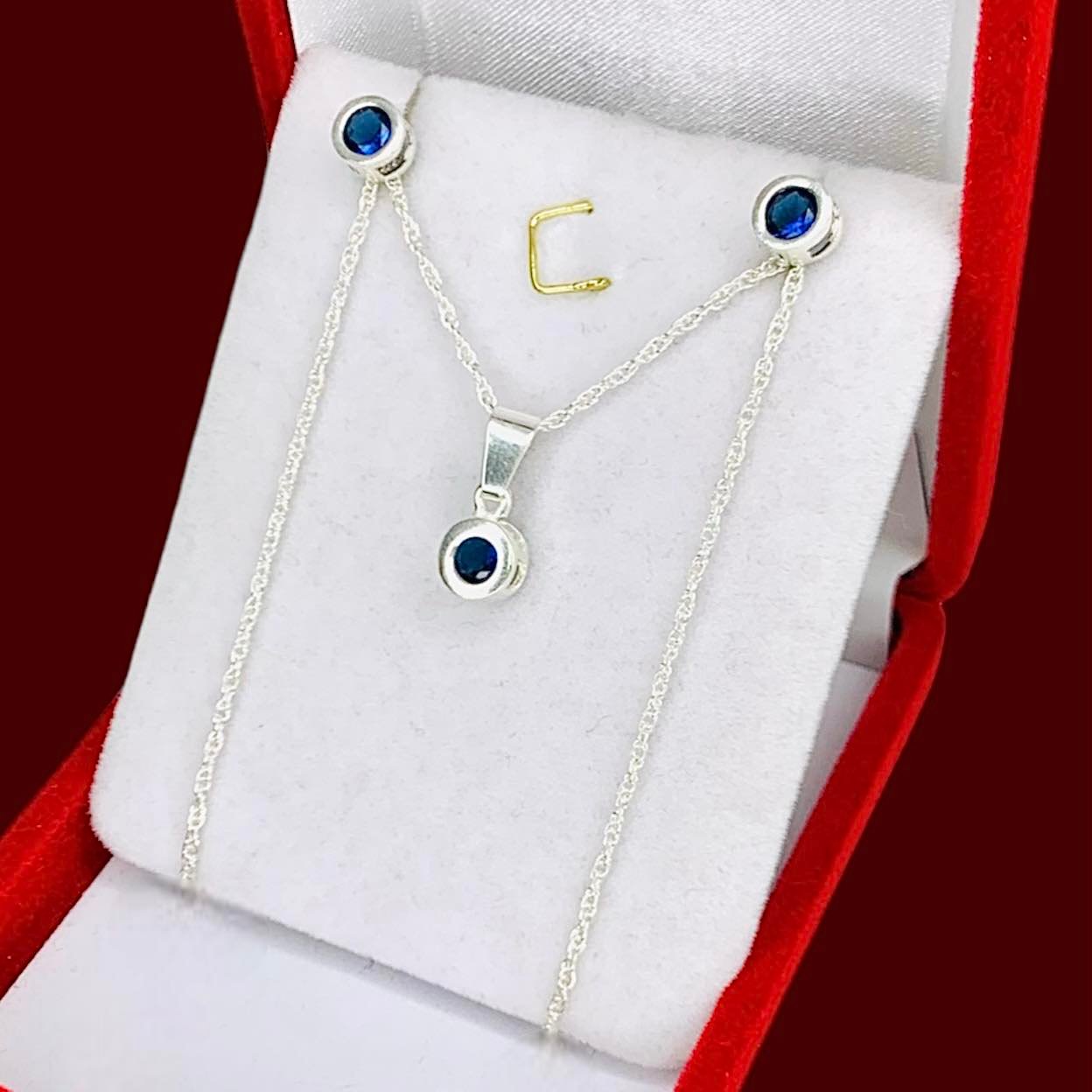 Artículo: KIT 140-4Conjunto Cadena Dije y Aro Susanita Cubic Azul de Plata 925