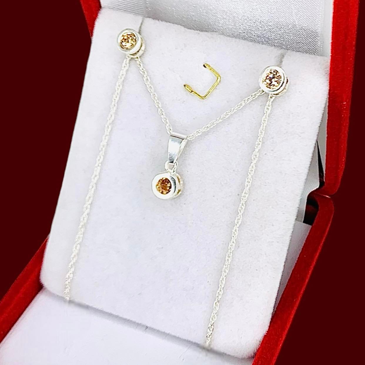 Artículo: KIT 140-5Conjunto Cadena Dije y Aro Susanita Cubic Ambar de Plata 925