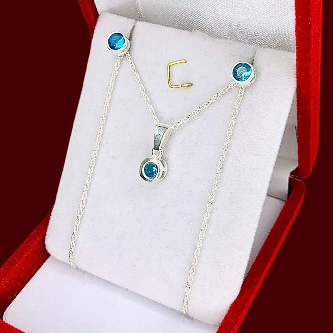 Artículo: KIT 140-8Conjunto Cadena Dije y Aro Susanita Cubic Aguamarina de Plata 925