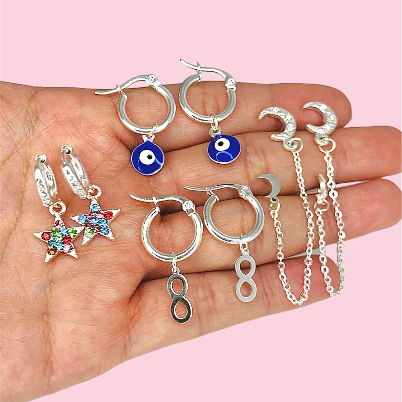 Pack Aros Variados de Acero Blanco x 4 pares