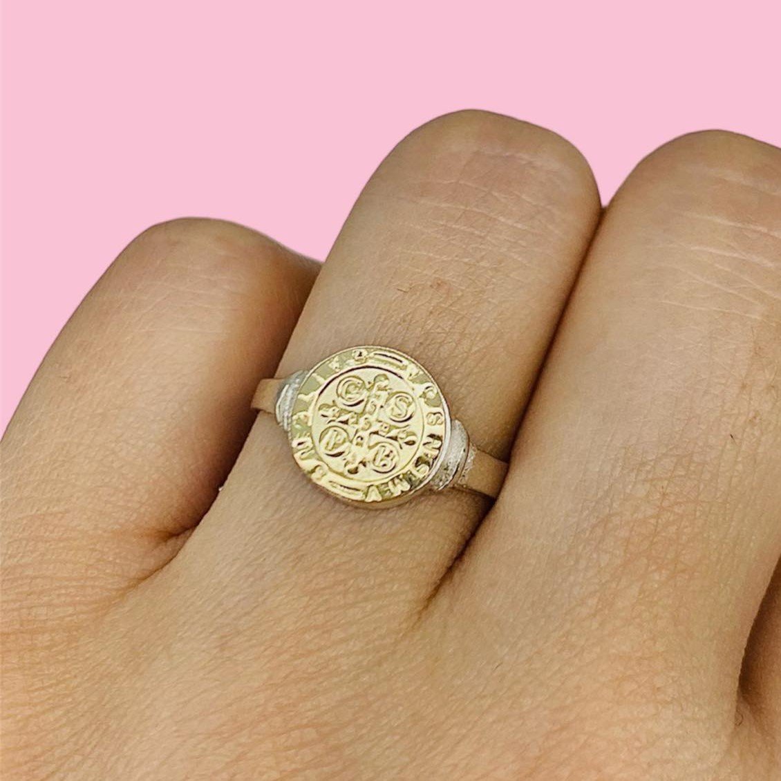 Anillo Sello San benito redondo de Plata y Oro
