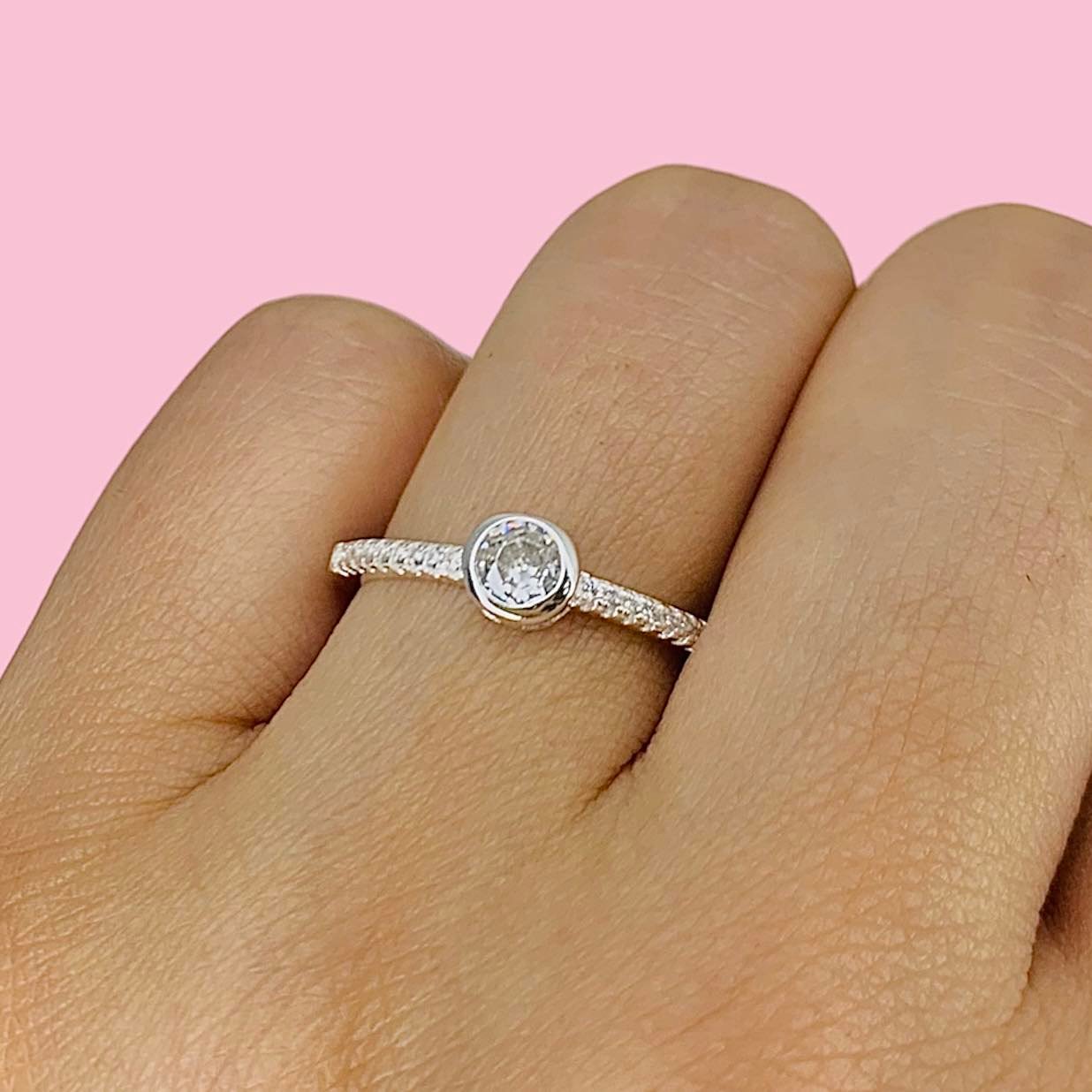 Anillo Compromiso cubic redondo blanco de Plata 925