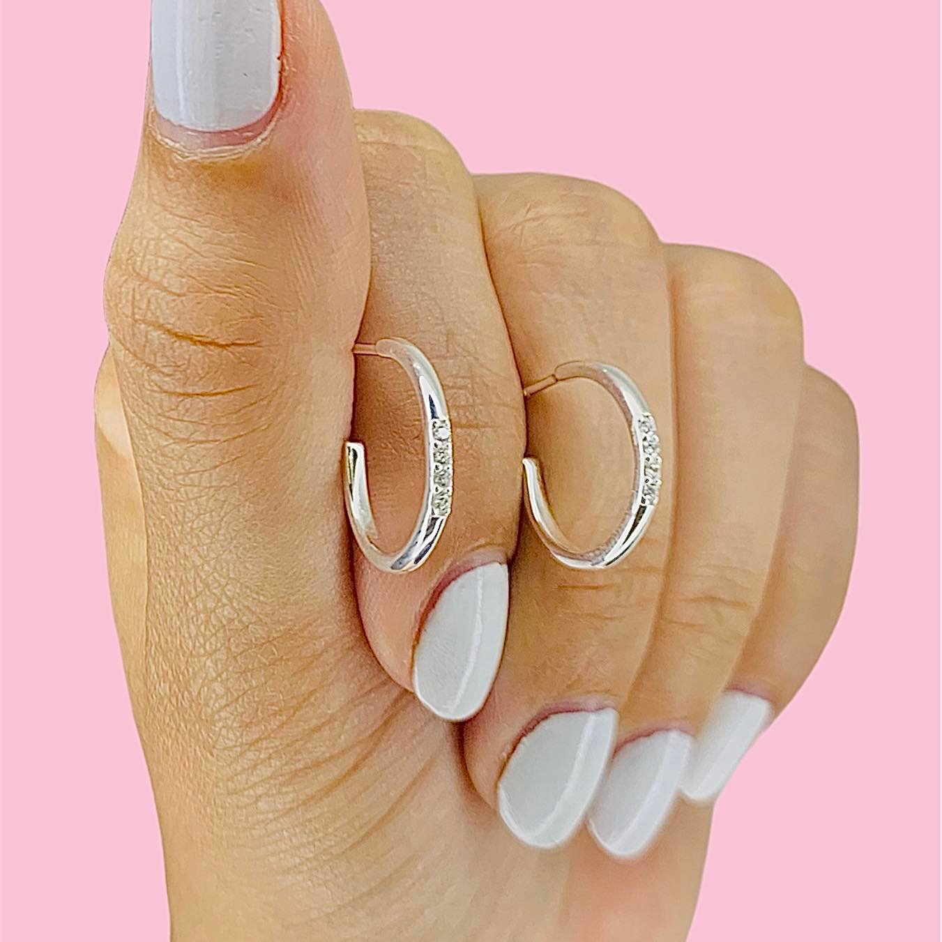Aros Media Caña con cubic blanco micropave Plata 925