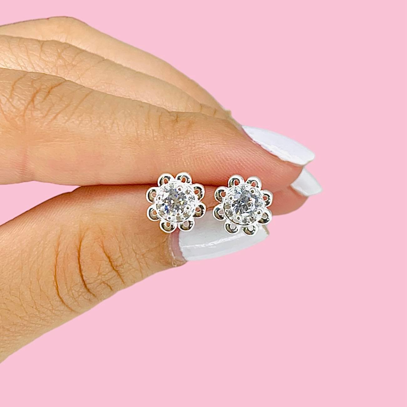 Aros flor Hermosa cubic blanco de Plata 925