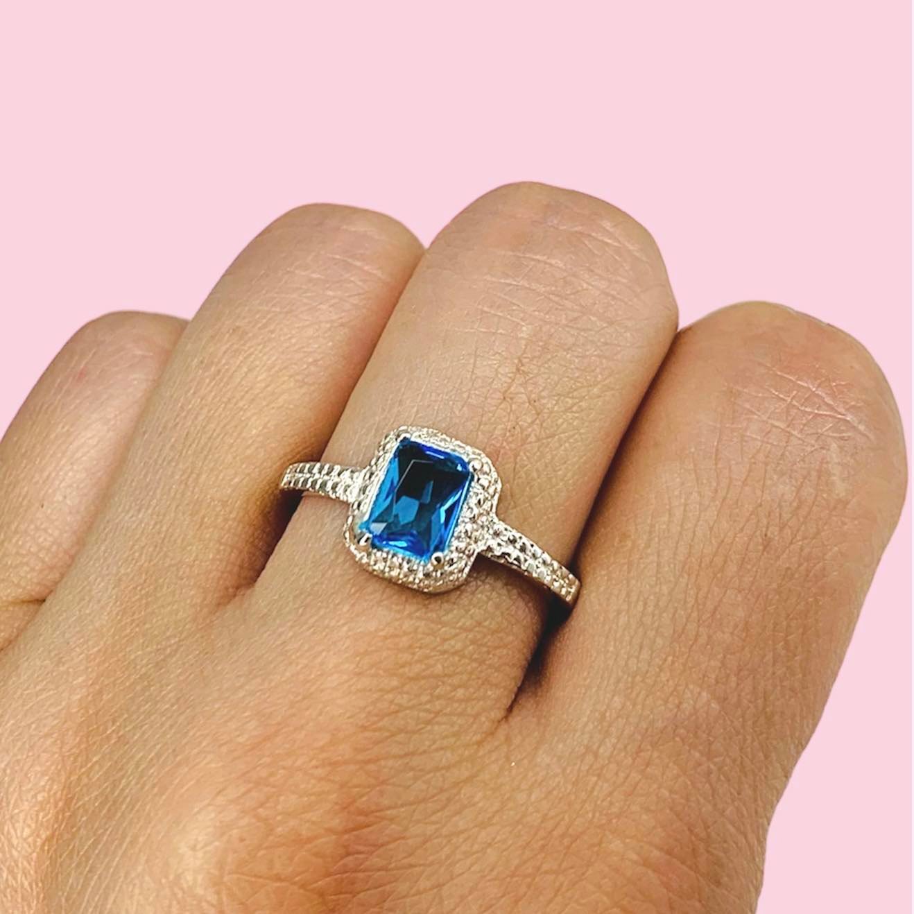 Anillo Compromiso Rectangular Celeste de Plata 925