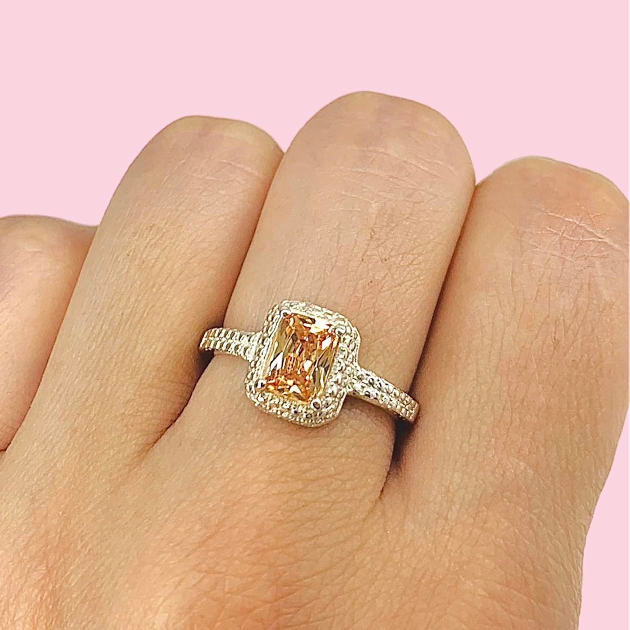 Anillo Compromiso Rectangular Ambar de Plata 925