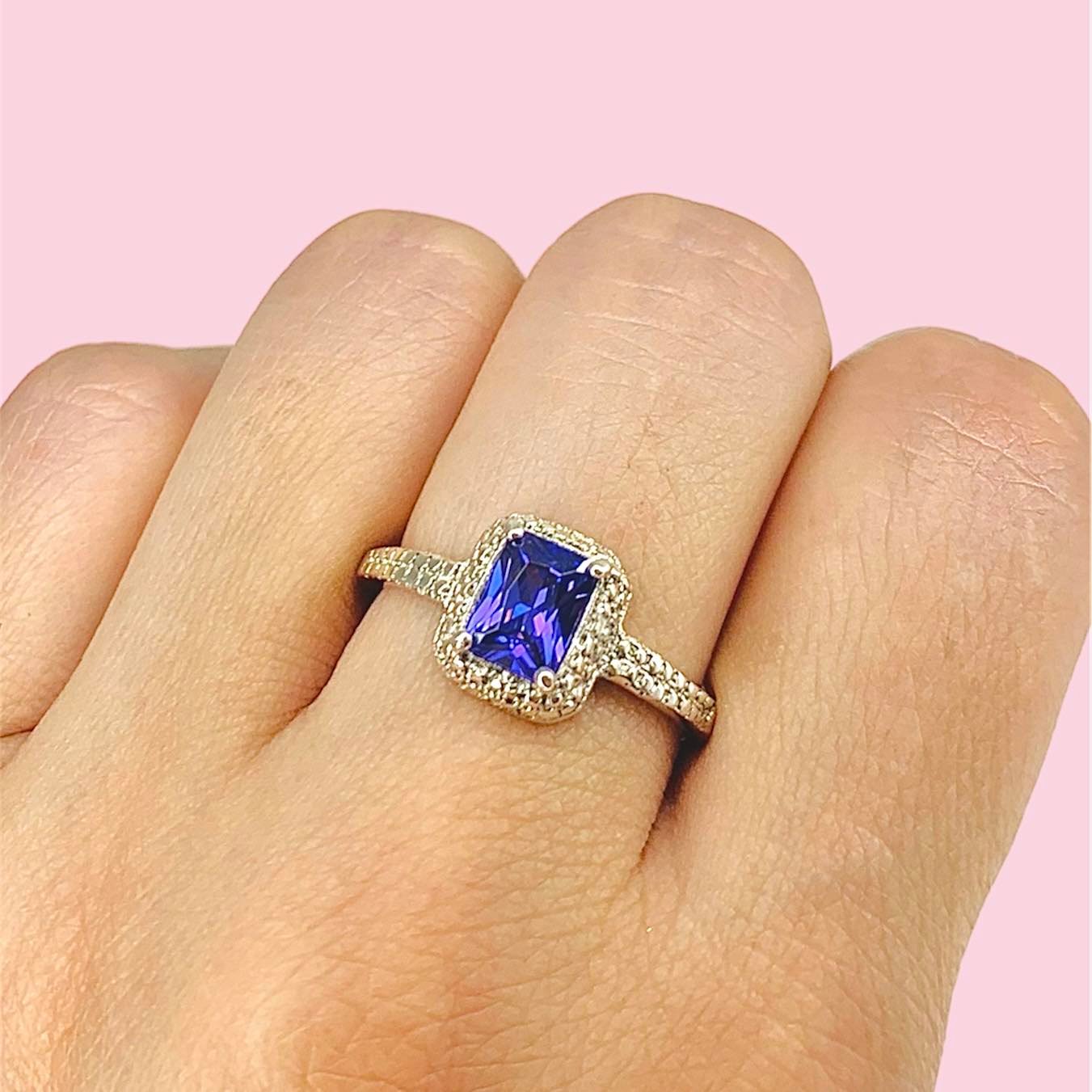 Anillo Compromiso Rectangular Violeta de Plata 925