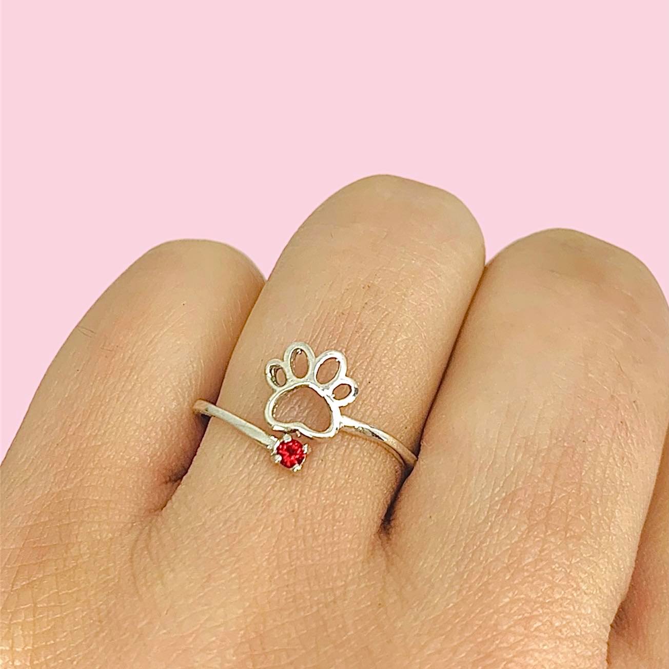 Anillo Patita de Perro con cubic Rojo de Plata 925
