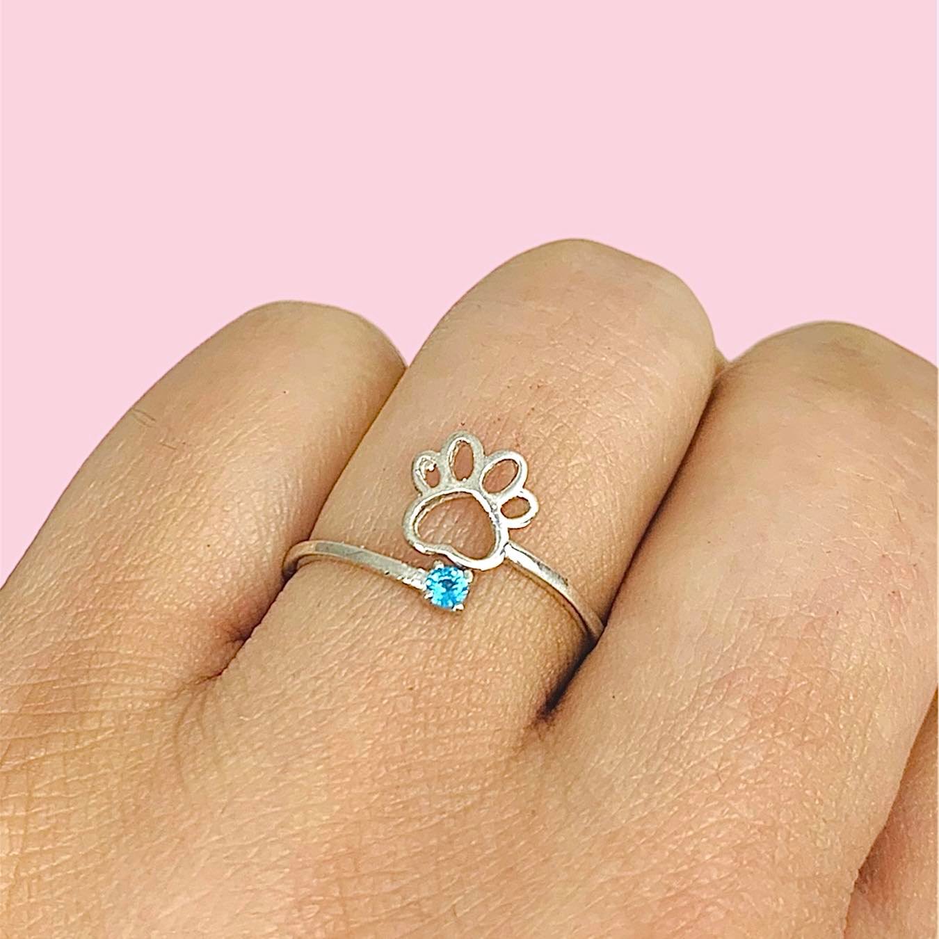Anillo Patita de Perro con cubic Celeste de Plata 925