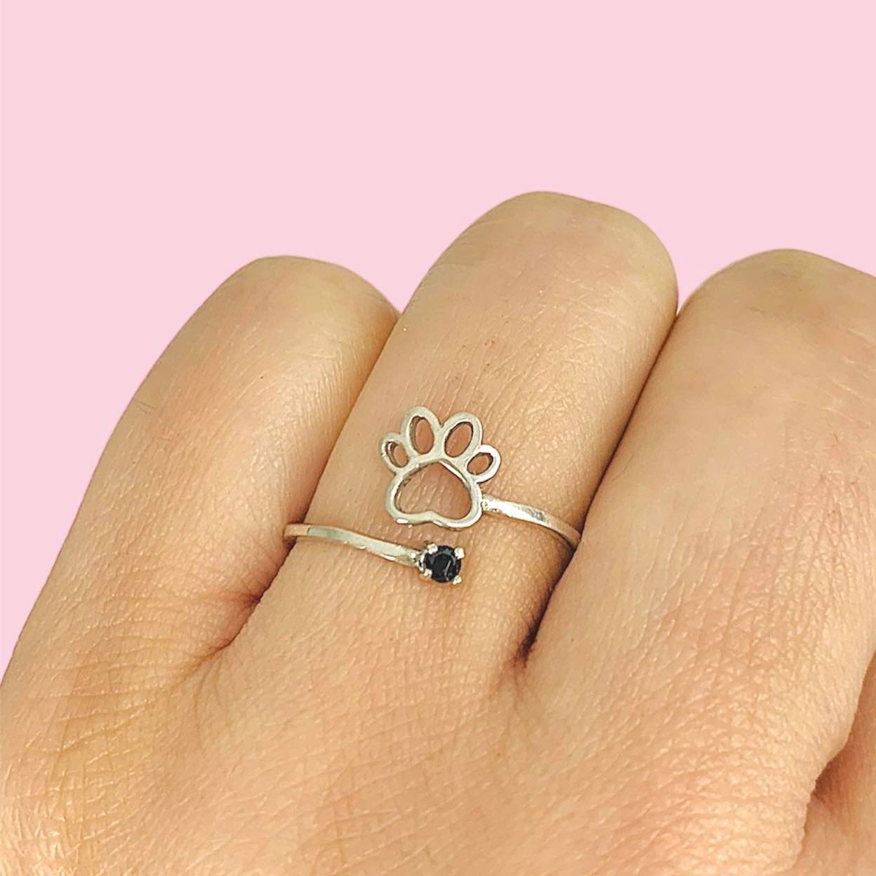 Anillo Patita de Perro con cubic Negro de Plata 925