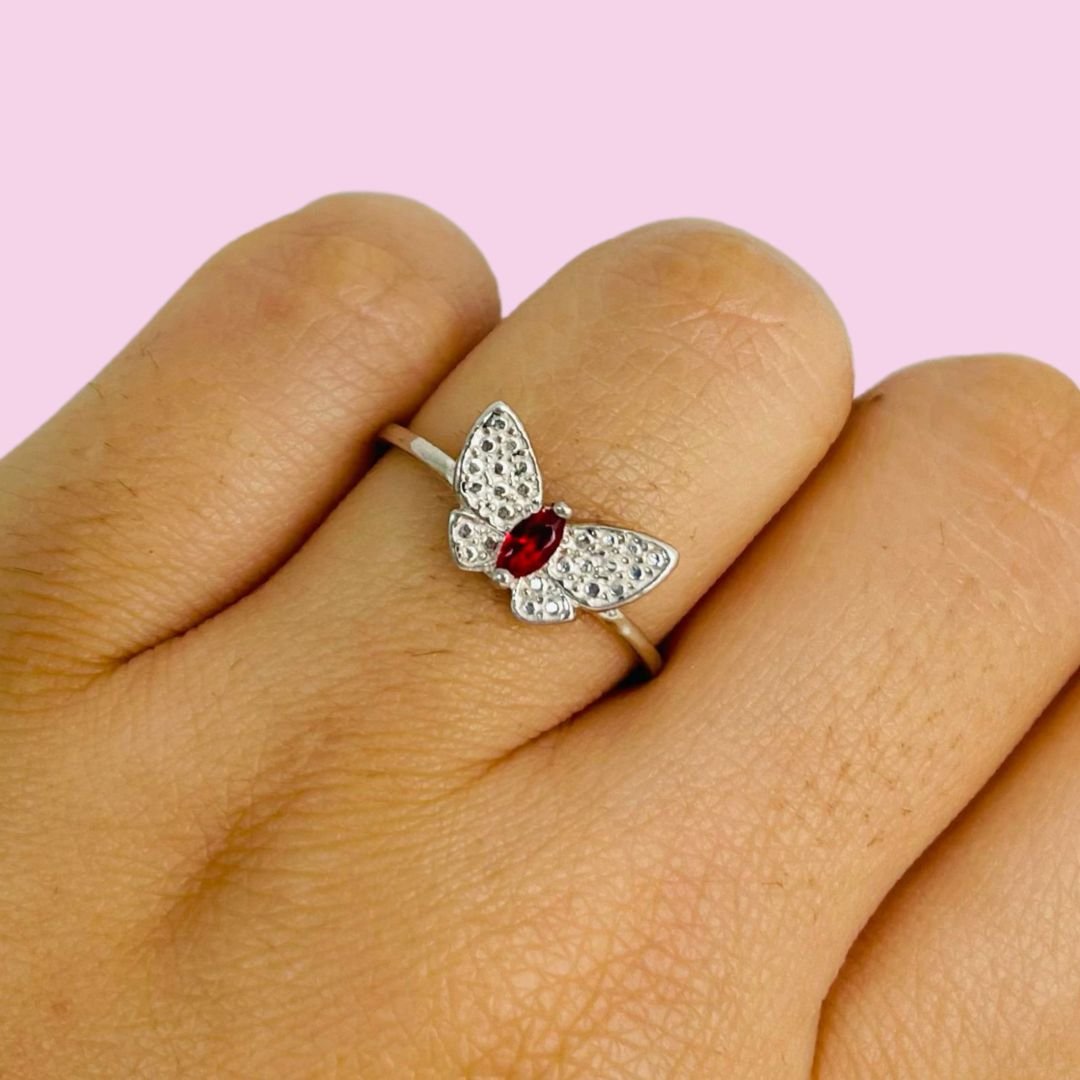 Anillo Mariposa Marquesita Rojo de Plata 925