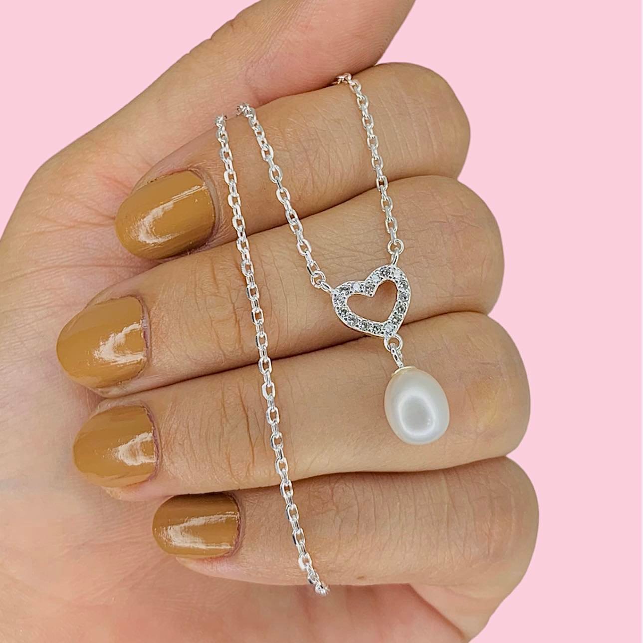 Conjunto Cadena Espejado corazon y perla colgante de Plata 925