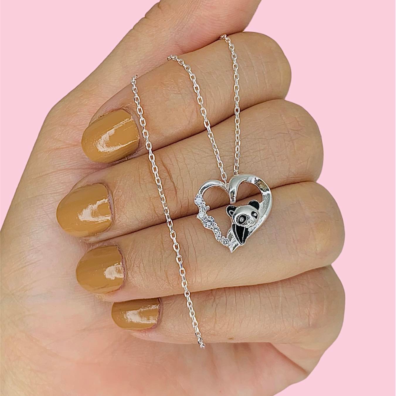 Conjunto Cadena Espejado Corazon Panda y cubic blanco de Plata 925