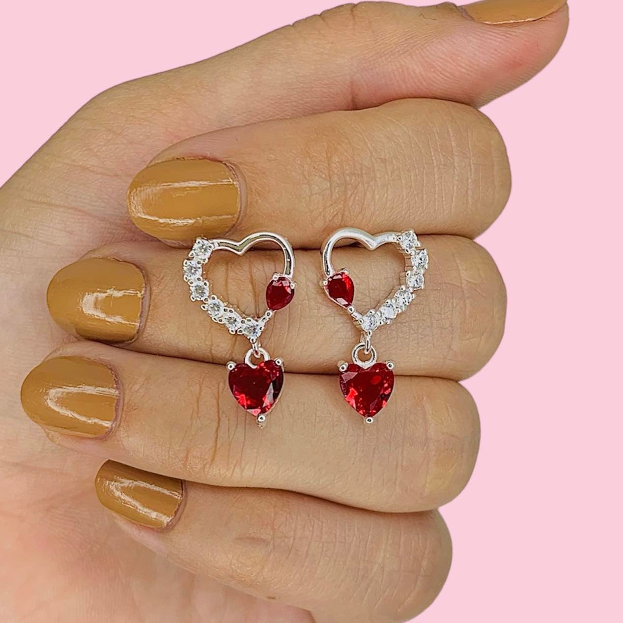 Aros Corazon Enamorado con cubic corazon rojo de Plata 925