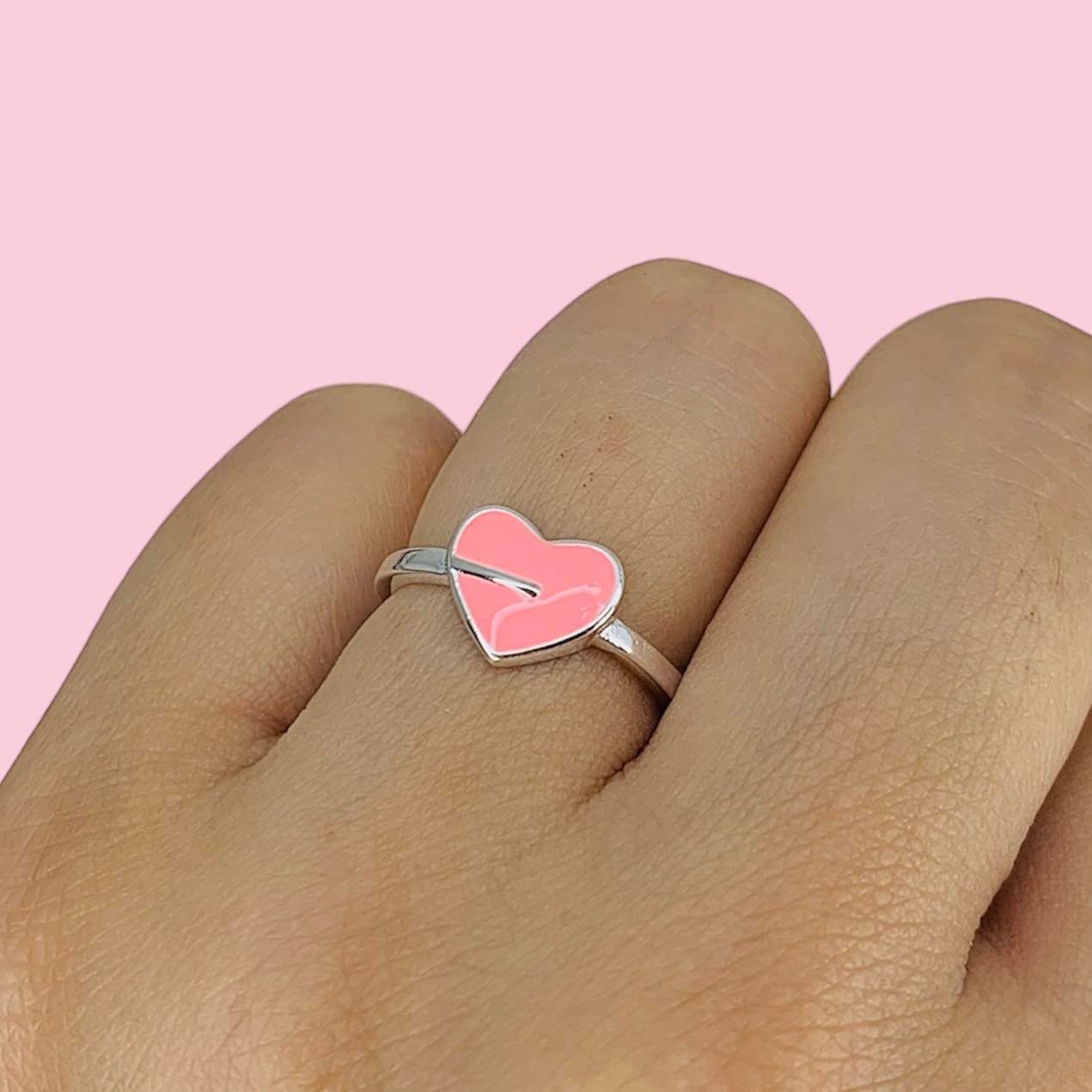 Anillo Corazon Esmaltado Rosa de Plata 925