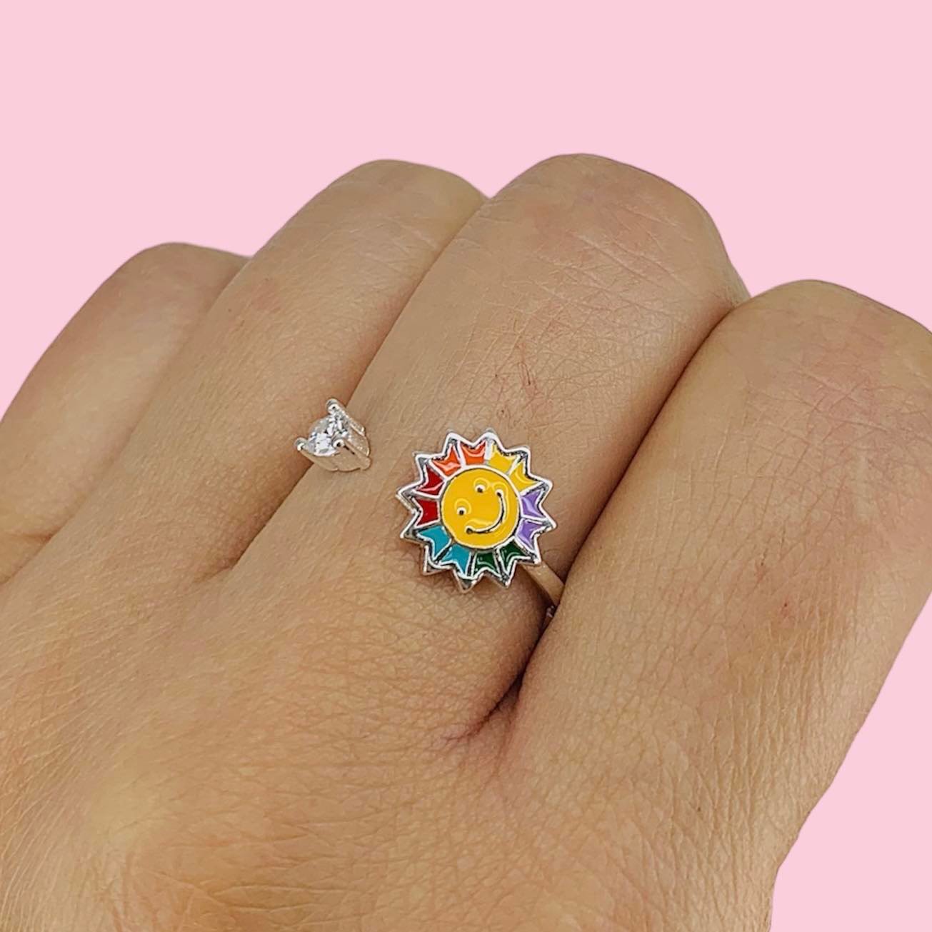 Anillo Sol Colorido y cubic blanco de Plata 925