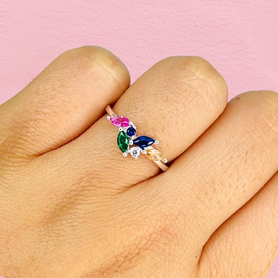 Anillo cubic marquesitas multicolor de Plata 925