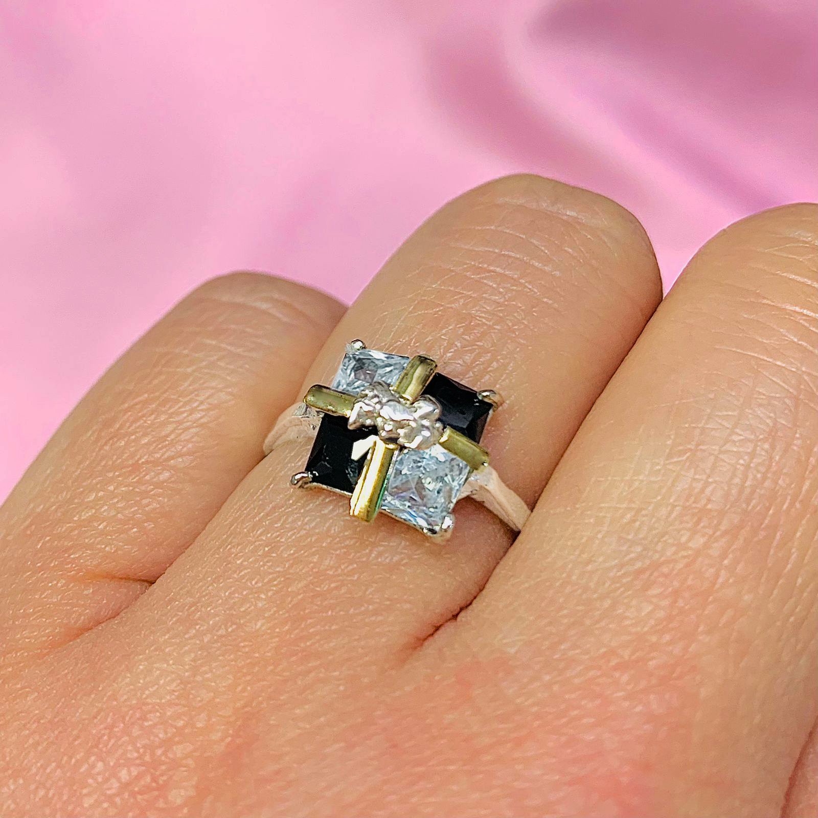 Artículo: AP 006-13Anillo con moño y cubic Combinado Negro y Blanco