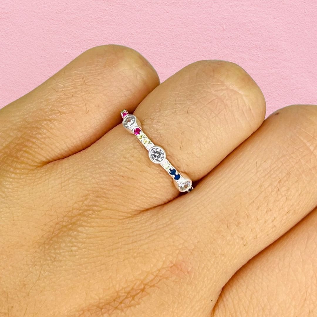 Anillo Medio sin fin cubic blanco y multicolor de Plata 925