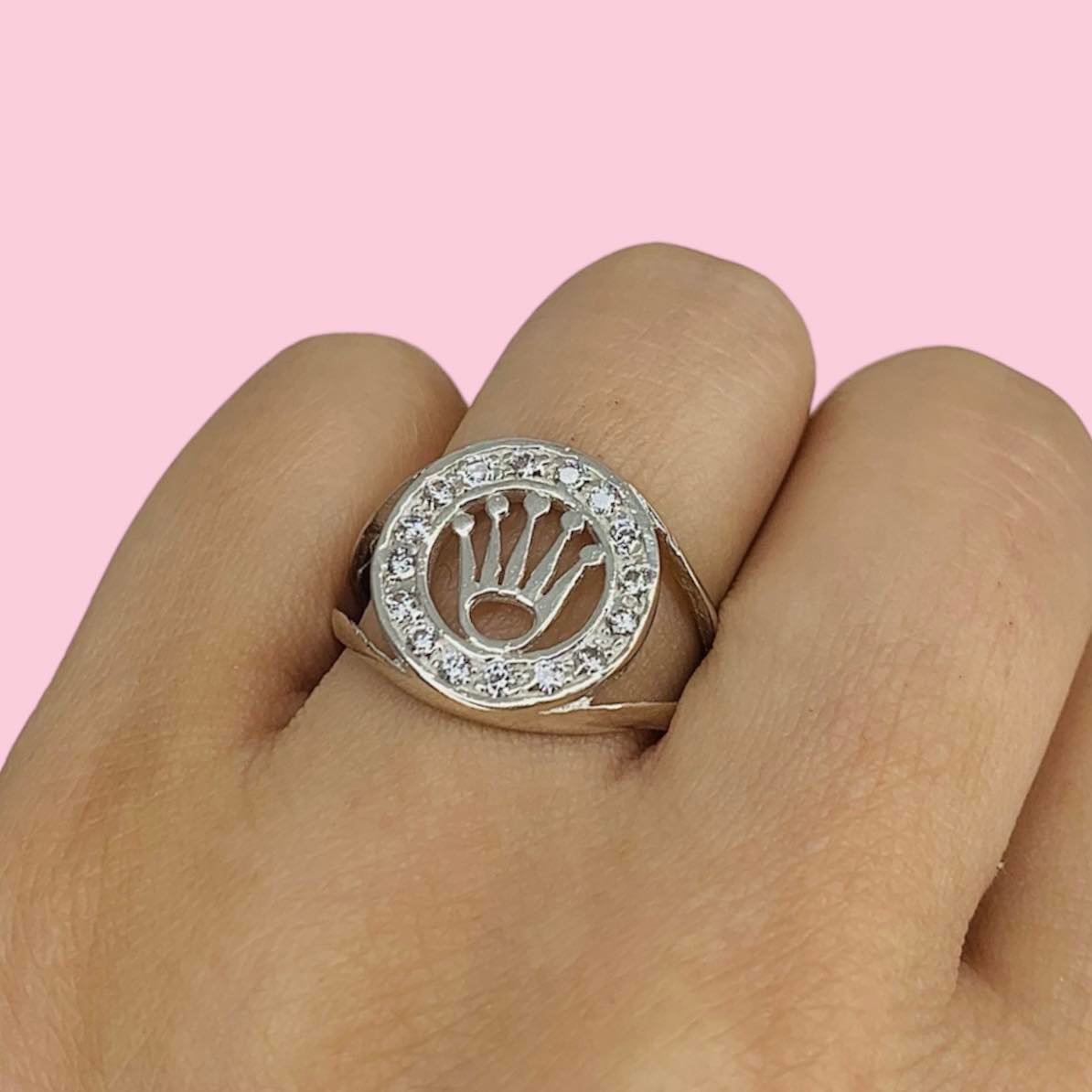 Anillo Corona Rey Rolex con cubic blanco de Plata 925