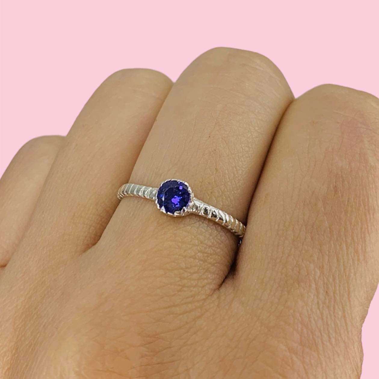 Anillo Compromiso con cubic Violeta de Plata 925