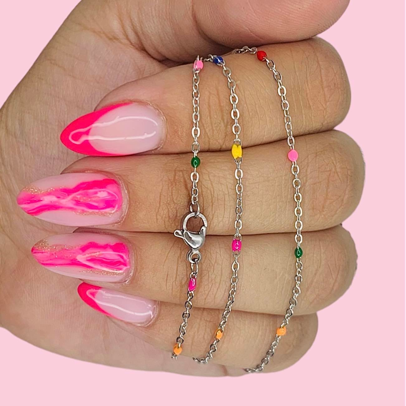 Cadena Rolito puntos esmaltados multicolor de Acero Quirurgico