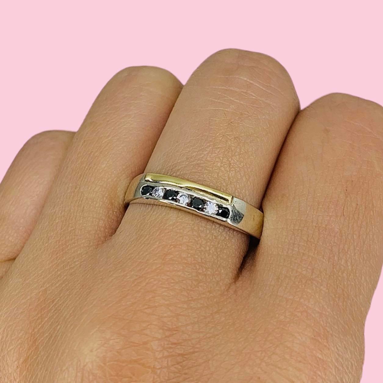 Anillo medio sinfin Negro y Blanco de Plata y Oro