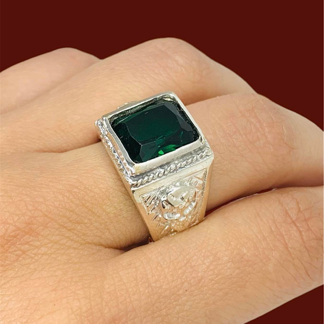 Anillo Sello Grande Cubic Rectangular Verde con calaveras para hombre Plata 925